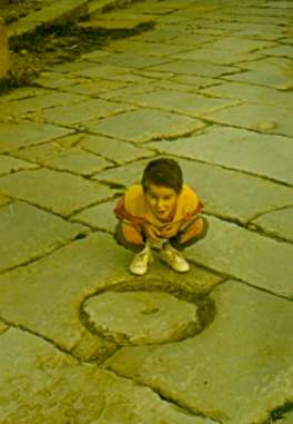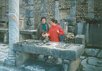 Снимката е правена при едно следващо ходене в Тимгад. Тук Маргото, Румен, бебка, Тамарка и Иван са в библиотеката.